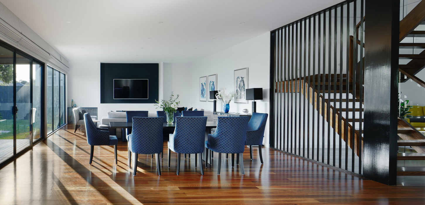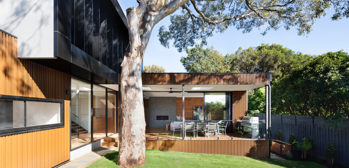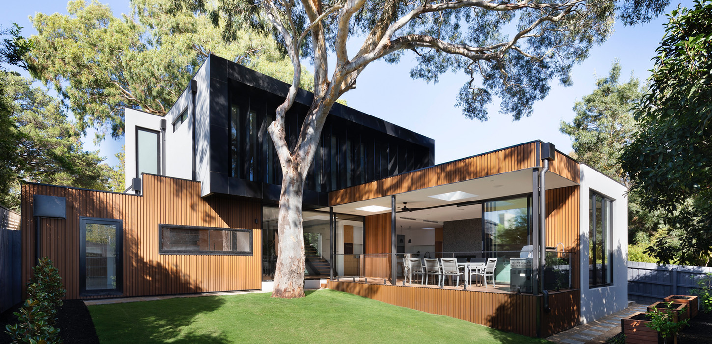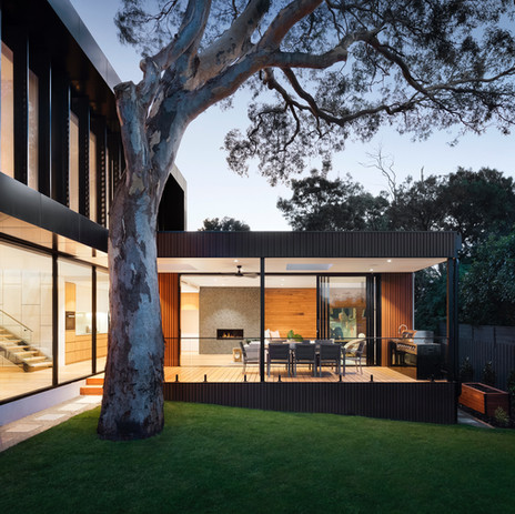 The design is inspired by the majestic gum trees on the property, celebrating their tall, sturdy trunks and the smooth, rustic texture of their bark. The homeowners desired a new family residence that could adapt to their changing needs over time, providing a joyful living space for all life stages. Despite the challenges posed by the trees, they also offered unique opportunities to integrate the house around them, enhancing the distinctive character of the site. Addressing issues such as the steep slope and building height restrictions due to a covenant, the design aimed to deliver a meaningful outcome without compromising on quality.